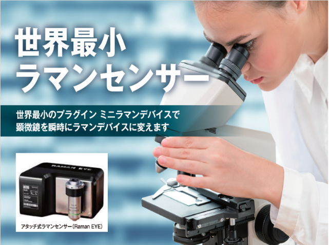 | <特徴> お持ちの顕微鏡にわずか1分で装着可 ・従来品の1/10の価格 ・高感度な顕微ラマン分光 ・リモート操作可能 ・世界最小ラマン分光センサ |