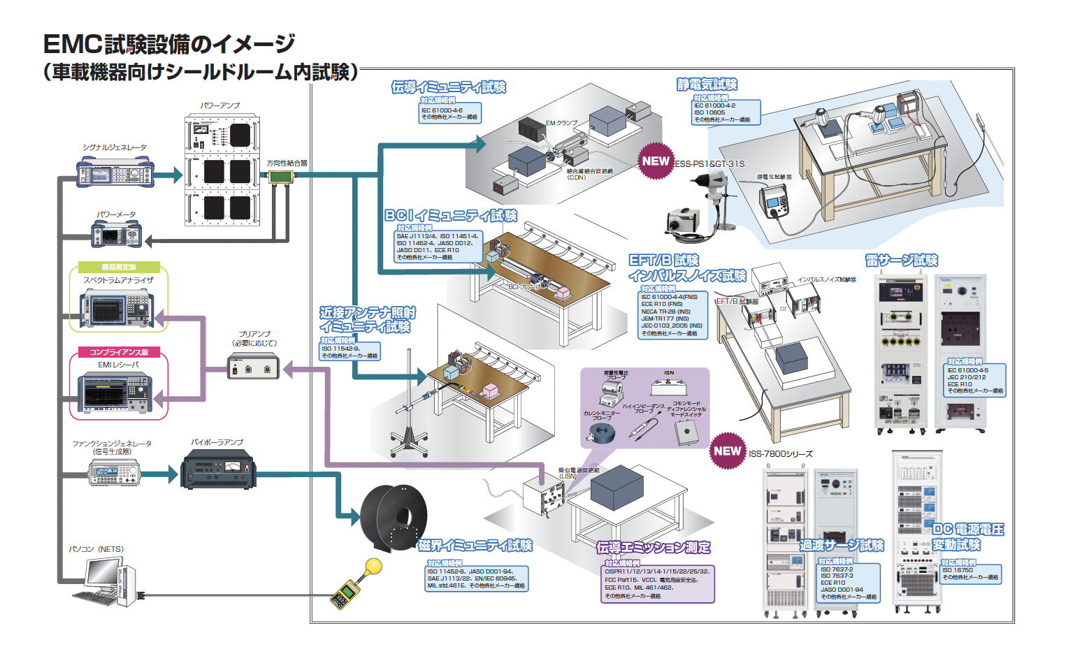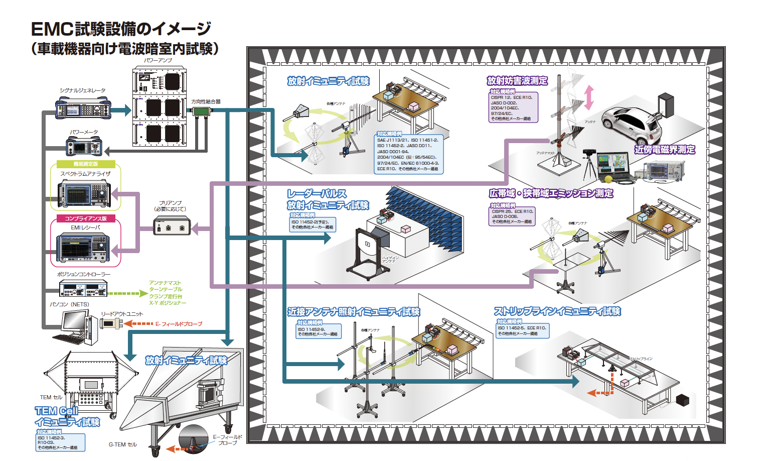 | ・車載機器用放射イミュニティ試験システム | ・車載機器用エミッション測定システム | ・レーダーパルス放射イミュニティ試験システム |