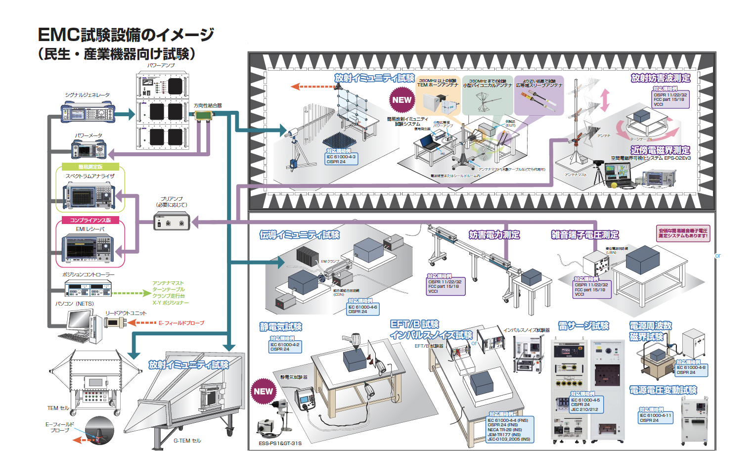 | ・放射イミュニティ試験システム | ・不要輻射測定システム 放射妨害波測定システム | ・伝導イミュニティ試験システム |
