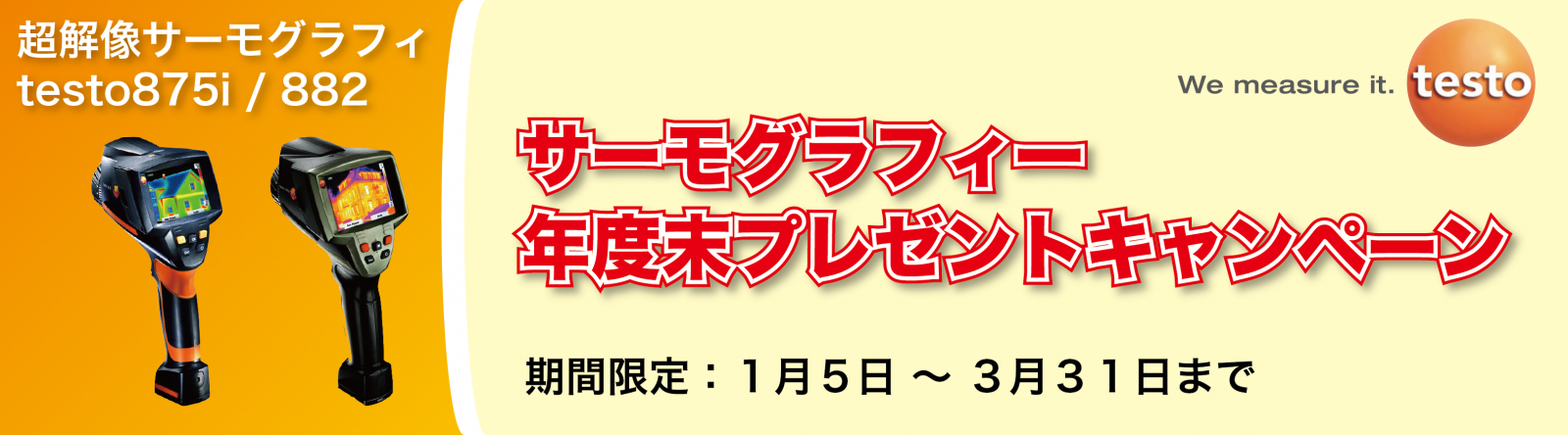 対象はtesto 875i か testo 882 の2機種で、いずれかをお買い上げのお客様にもれなくポケットラインシリーズから1台プレゼントいたします。