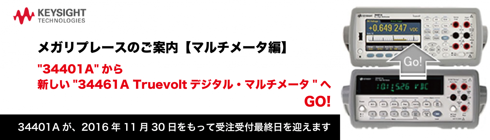 キーサイト・テクノロジー合同会社の製品、多くの皆様にご愛用いただいております長年業界のスタンダートであった34401Aが、2016年11月30日をもって受注受付最終日を迎えます。