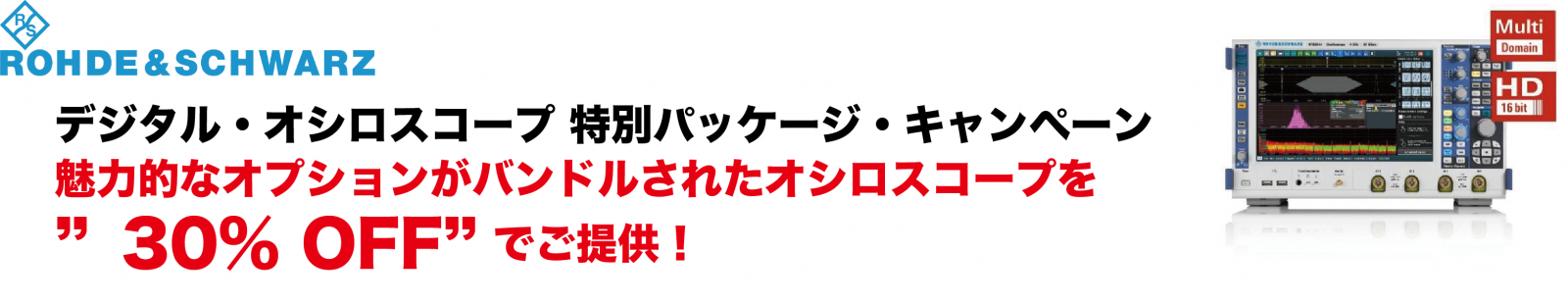 ローデ・シュワルツ・ジャパン株式会社では、2016年12月末までの期間限定で、魅力的なオプションがパッケージされたオシロスコープを"30% OFF"でご提供いたします。