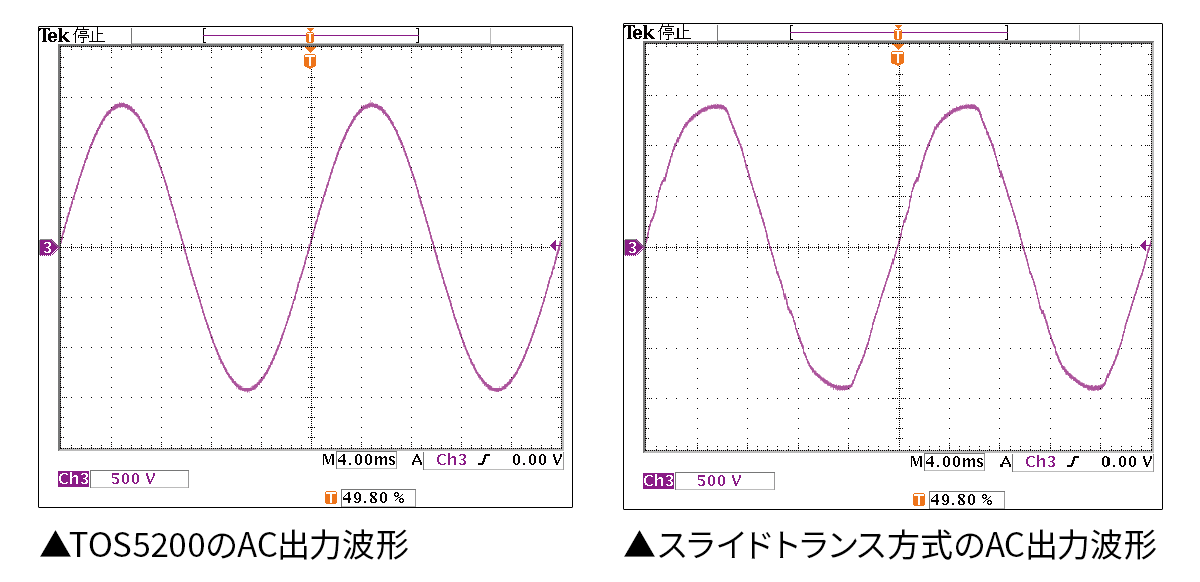TOS5200は、PWMスイッチング方式により、入力電圧に影響されず、高安定出力が可能です。従来のスライドトランス方式では入力電圧の変動が出力に影響するため、正しく試験出来ないことがあります。歪んだ電圧を被試験物に印加する事は新品不良の原因を作ってしまう(部品劣化の加速)場合もあるのです。TOS5200は、ACラインの変動に影響を受けず安定した高電圧を出力できます。特に海外など電圧変動の大きい地域でも「安心」して、「安定」した信頼性の高い「安全」な試験が可能です。さらに出力周波数も50Hz/60Hz選択可能です。