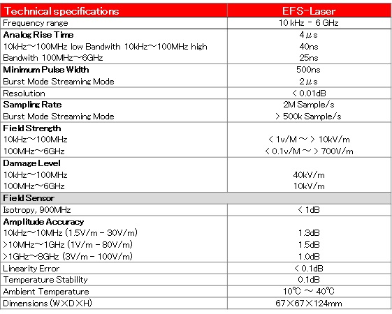 全体の周波数適用範囲(電力ラインからの妨害影響を最小にするためにドライブされるバッテリー)の上に、ほとんど一定のアンテナ係数があるアクティブな、シールド・ループ・アンテナ。CISPR(CISPR)-16 EMI(EMI)-レシーバーと組み合わせられて、能力を測定している低雑音とパルスによる便利な電界強度測定システムは、構成されます。また、LAX-10はスペクトルアナライザーと使用されます。シールド・アルミニウム・ハウジングはデスクトップ操作向けのゴム足を備えているか、最下部で雌カメラねじ(3/8」)を使用している三脚に取り付けられます。ディープ放電に対する保護回路は、長いバッテリー・ライフサイクルを提供します。バッテリーは、自動スイッチのオフの後再充電されなければなりません。推薦された充電器を使用している完全バッテリー充電は、およそ5時間かかります。PWR-スイッチは、充電期間でオフに設定します、さもなければ、充電は起こりません。スイッチが設定される(通常の測定している操作)PWRの間、充電コネクタは使用不可です、これは、測定に対する不必要な影響がある充電器で発生する妨害を避けます。