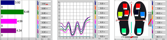 自社開発の感圧センサを使用したシステムで、圧力変化を容易にリアルタイムで検出できます。センサ部で検知したデータは送信モジュールからパソコンへ転送し、専用アプリケーションにより記録や編集することが可能です。 アプリケーションでは圧力変化を波形で認識できる「折れ線モード」や圧力の強弱を判別しやすい「棒グラフモー ド」など9種類の中から用途に合わせて選択可能です。さらに、アプリケーション上で換算値[N]表示することができるため、出力値を荷重値変化としてとらえることができます。