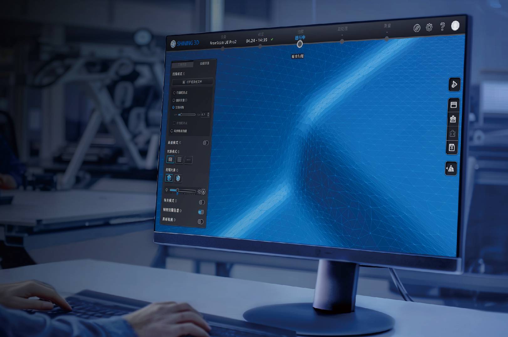 FreeScan UE Pro2は、計測器レベルの高精度と高速スキャンを両立したポータブル3Dスキャナーです。950gの軽量設計とワイヤレス対応で、大型から精密部品まで現場での自在なスキャンを可能にします。