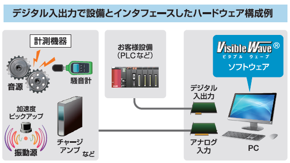 VisibleWave(ビジブルウェーブ)は音や振動の計測解析評価から判定処理までを実行するアプリケーションソフトウェアおよび本ソフトウェアを応用したシステムです。