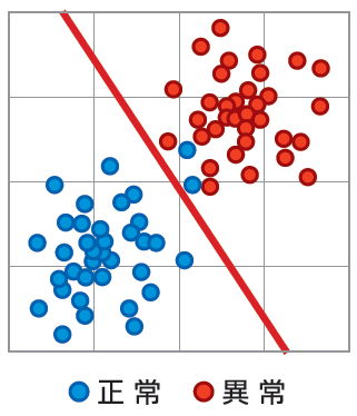 異常の特徴を定量化して判定閾値へ設定登録もしくは学習データとして取込み学習処理により判定閾値を生成し自動判定を実現します。