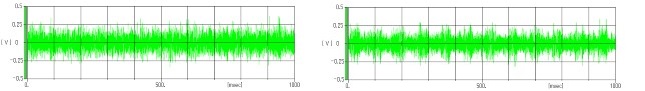 異常品はさまざまな音の中に周期的な異音が聴こえますが、生波形では正常品との判別ができません。