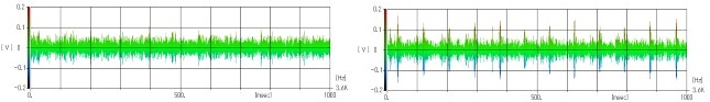 異常品は時間軸(横軸)上に周期的な成分が含まれることが判ります。
