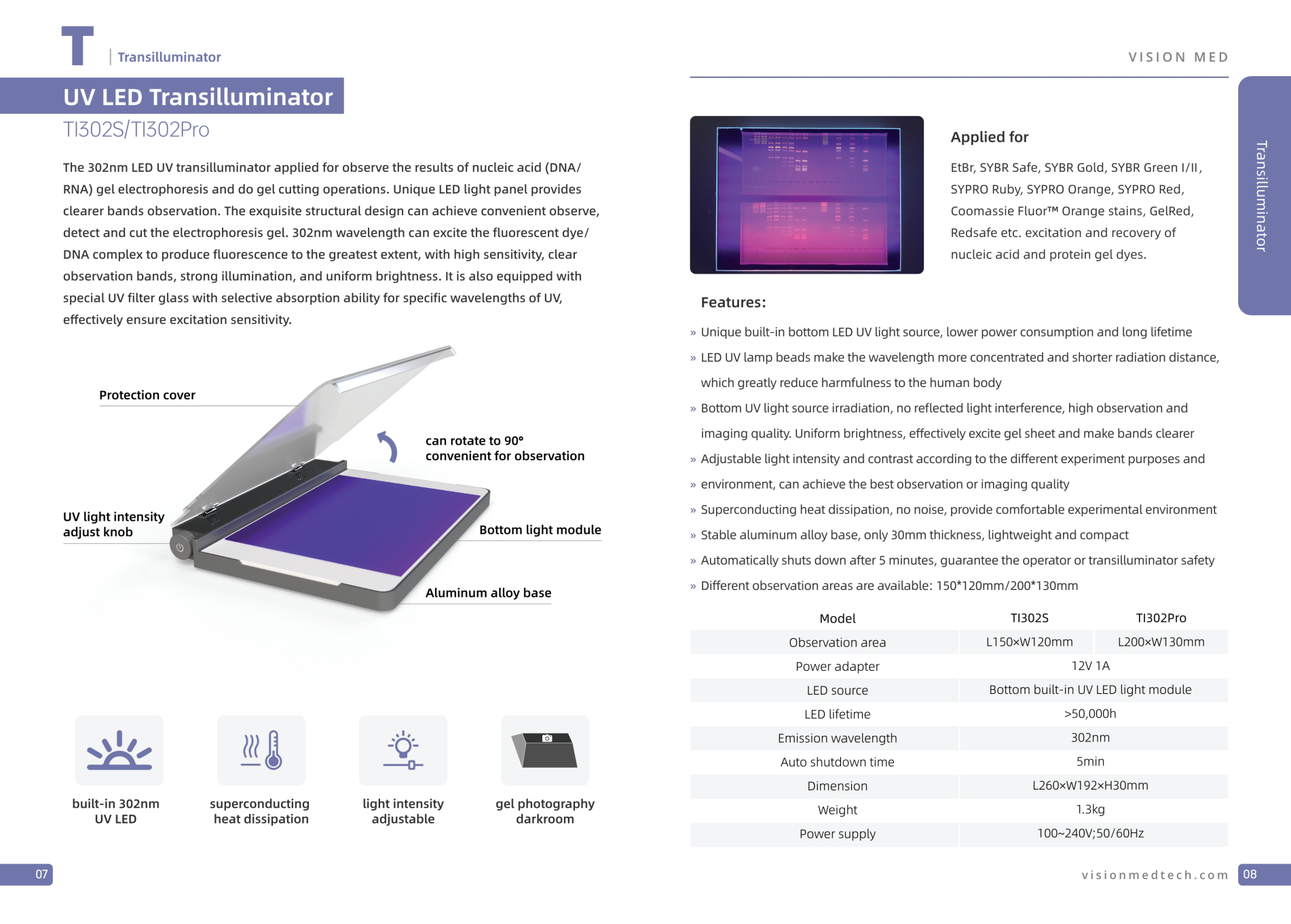 Vision MedのUV LEDトランスイルミネーターは、超薄型でLEDランプビーズがマトリックス状に配置されて光を発し、非常に均一な超薄型UV LEDで、世界で唯一のものです。