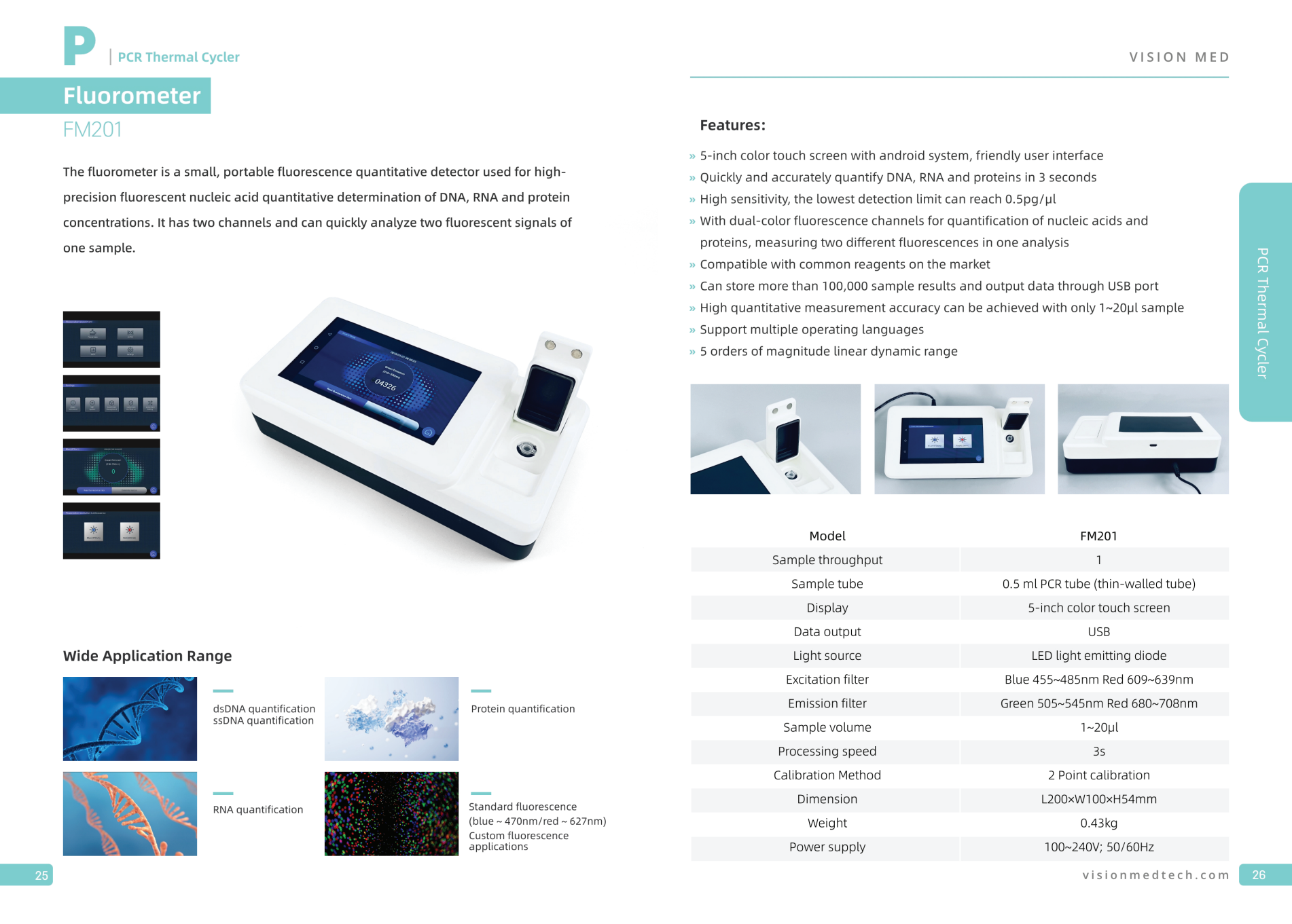 蛍光計は、DNA、RNA、マイクロRNA、およびタンパク質の濃度を高い精度で定量的に測定するための小型で携帯可能な蛍光定量検出器です。2つのチャンネルを備え、1つのサンプルから2つの蛍光信号を迅速に分析することができます。