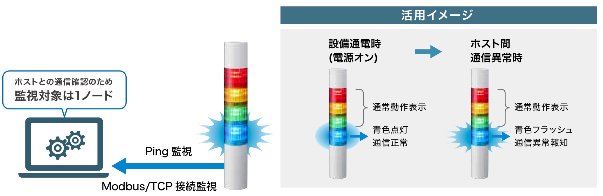 ホスト機器との接続を確認できます。ホストとの接続が途絶えた際にLEDユニットでお知らせすることで、ホスト間死活監視が可能になります。