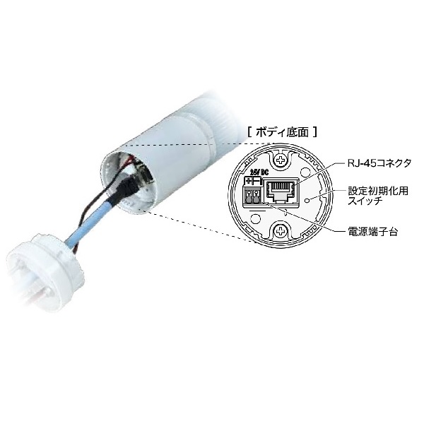 DC24Vで電源供給、RJ-45コネクタLANケーブルで制御ができます。バラ線と⽐較し配線工数が削減できます。