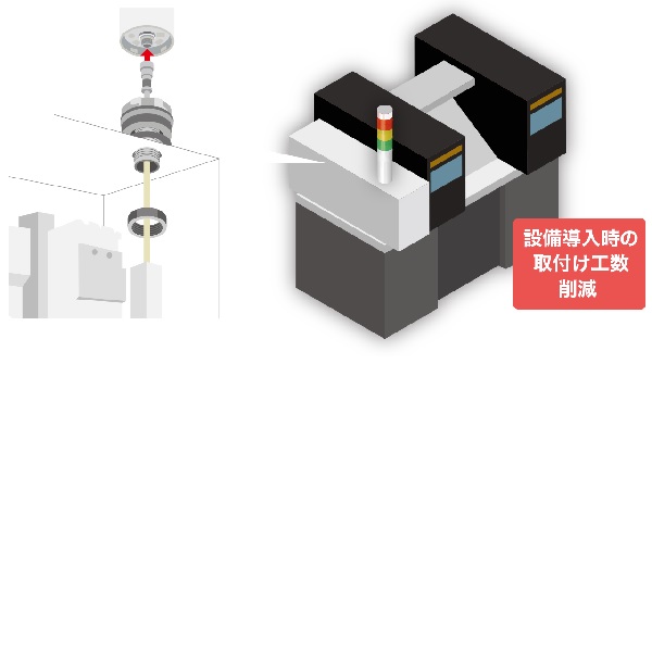 M12コネクタを使用することにより、 ケーブル1本での配線が可能になるため、 配線工数の削減になります。設備導入時の信号灯の取付け・取外しが簡単にできます。