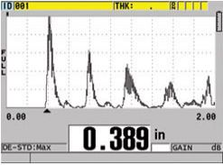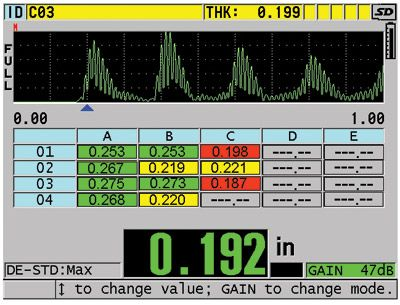 ・タイムベースによるB-スキャンモード: スキャンするごとに10,000件の厚さ測定値を確認可能