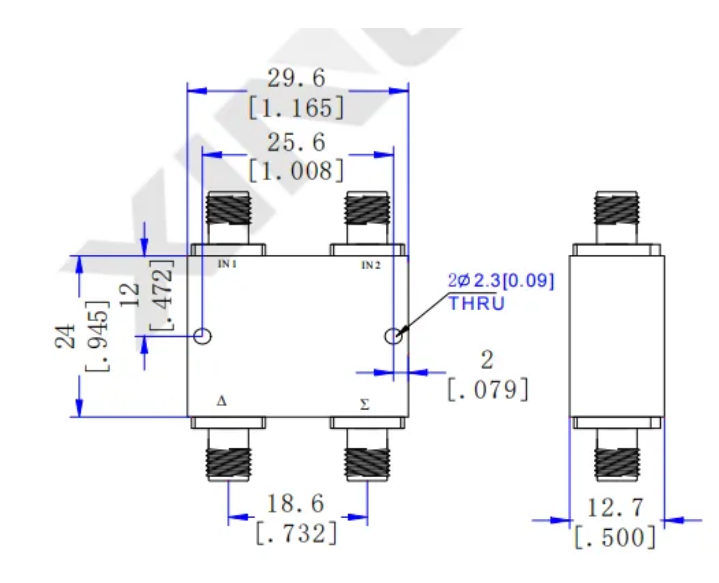 180° 2.92mmハイブリッドカプラ 18–40GHz は、マイクロ波/ミリ波帯で使用される 広帯域180°ハイブリッドカプラ です。入力信号を 等振幅・180°位相差の2系統に分配でき、 また複数信号の合成にも利用されます。