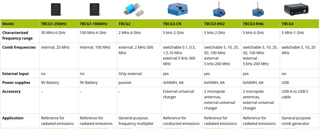 TBCG1-25MHzは、内蔵アンテナと基本周波数25MHzを備えた放射コムジェネレータです。最大6GHzまでの特性を持つコムスペクトルを放射します。このコムジェネレータは、電波暗室、TEM/GTEMセル、シールドチャンバーなどにおける放射ノイズ測定装置の試験用概略基準として設計・特性評価されています。