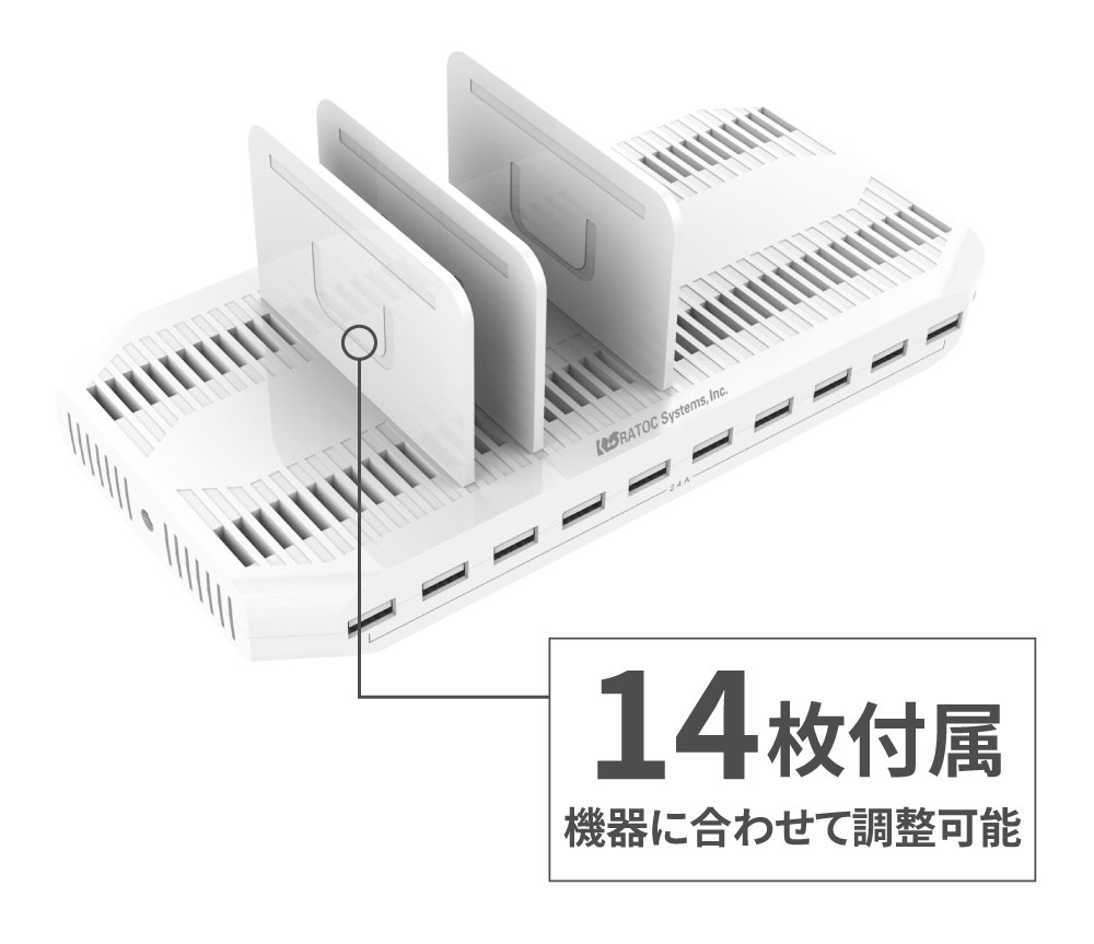■合計最大出力は96W!10台同時に充電可能 ■Apple 12Wなどの急速充電/高速充電に対応 ■最適な出力で充電できるスマートIC機能 ■14枚の仕切り板で自由に位置調整 ■万が一に備えた放熱・保護回路設計
