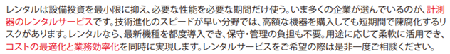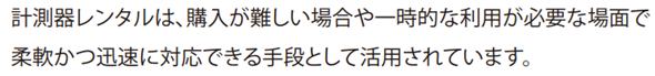 レンタルは設備投資を最小限に抑え、必要な性能を必要な期間だけ使う。いま多くの企業が選んでいるのが、計測器のレンタルサービスです。技術進化のスピードが早い分野では、高額な機器を購入しても短期間で陳腐化するリスクがあります。レンタルなら、最新機種を都度導入でき、保守・管理の負担も不要。用途に応じて柔軟に活用でき、コストの最適化と業務効率化を同時に実現します。