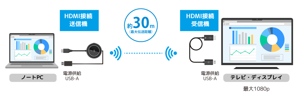 HDMIポートに接続して映像・音声をテレビに無線出力!ワイヤレスHDMI送受信機