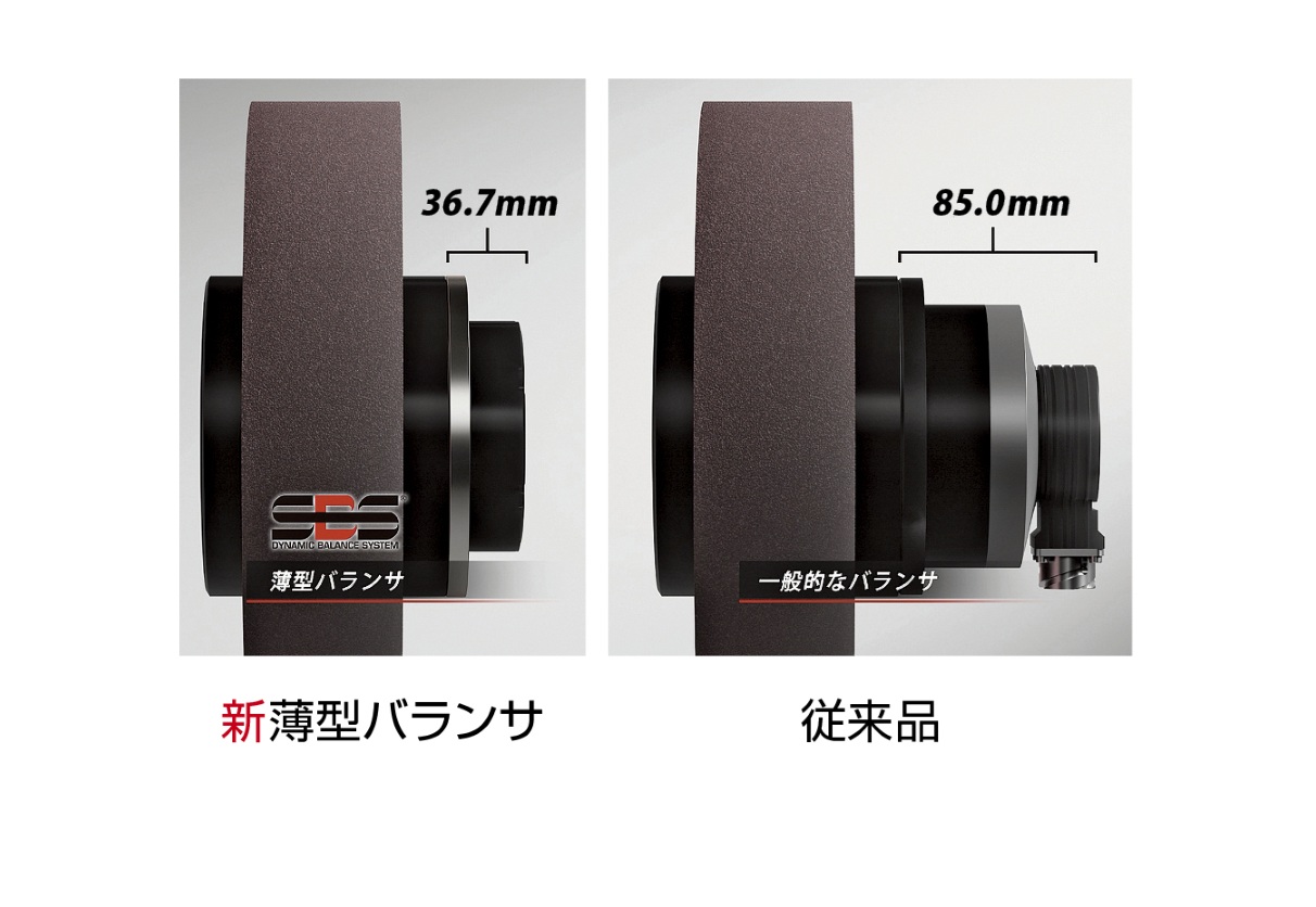 薄型のバランスヘッド+リング形状センダ(受電部)によりシステム高さ40mm以下を実現。従来では困難であった狭い場所へのバランサ取付けが可能。
