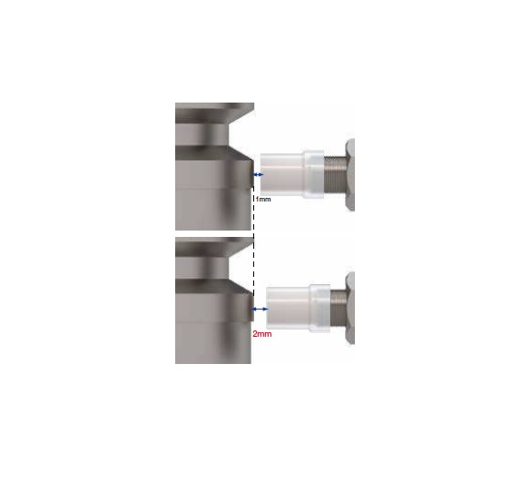 現行のGAP1mmでセンサを設置した場合、高速でツールチェンジを行うマシニングセンタでは衝突が発生するケースがあります。ツールからセンサヘッド間ギャップ量を2倍に拡大することで物理的接触のリスクを低減します。(ご使用にはGAP拡大仕様のコントローラが必要です。)センサヘッドの故障によるダウンタイムの発生、センサ交換の時間、保守用センサの費用削減に貢献します。