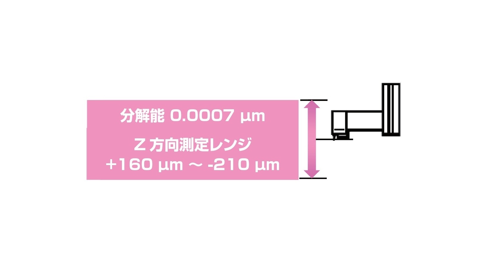従来のハンディサーフでは、高分解能での測定時には測定レンジを狭く設定しなければなりませんでしたが、HANDYSURF+ではその必要がありません。クラストップレベルのZ方向測定レンジ370μmを有し、その全域で0.0007μmの高分解能を実現。レンジを意識せず測定を行えます。