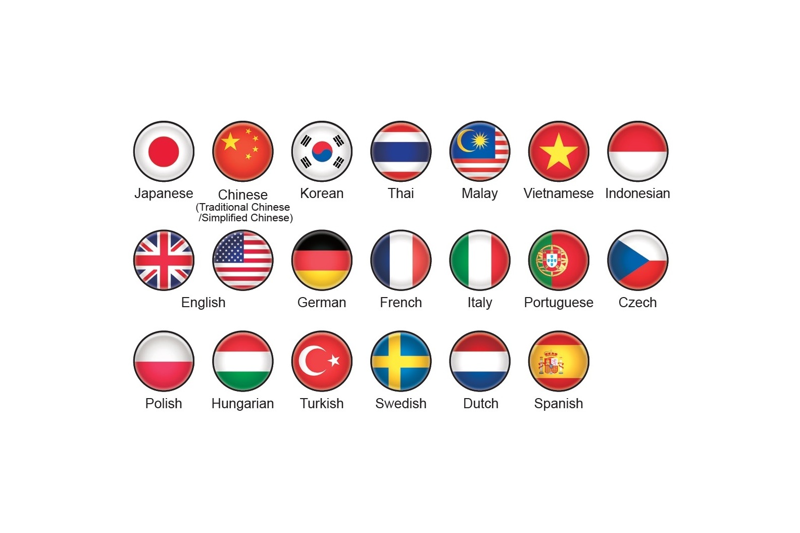 日本語、英語、独語のほか、アジアやヨーロッパなどの20ヶ国語に標準対応。ボタン操作で簡単に切り替え可能です。