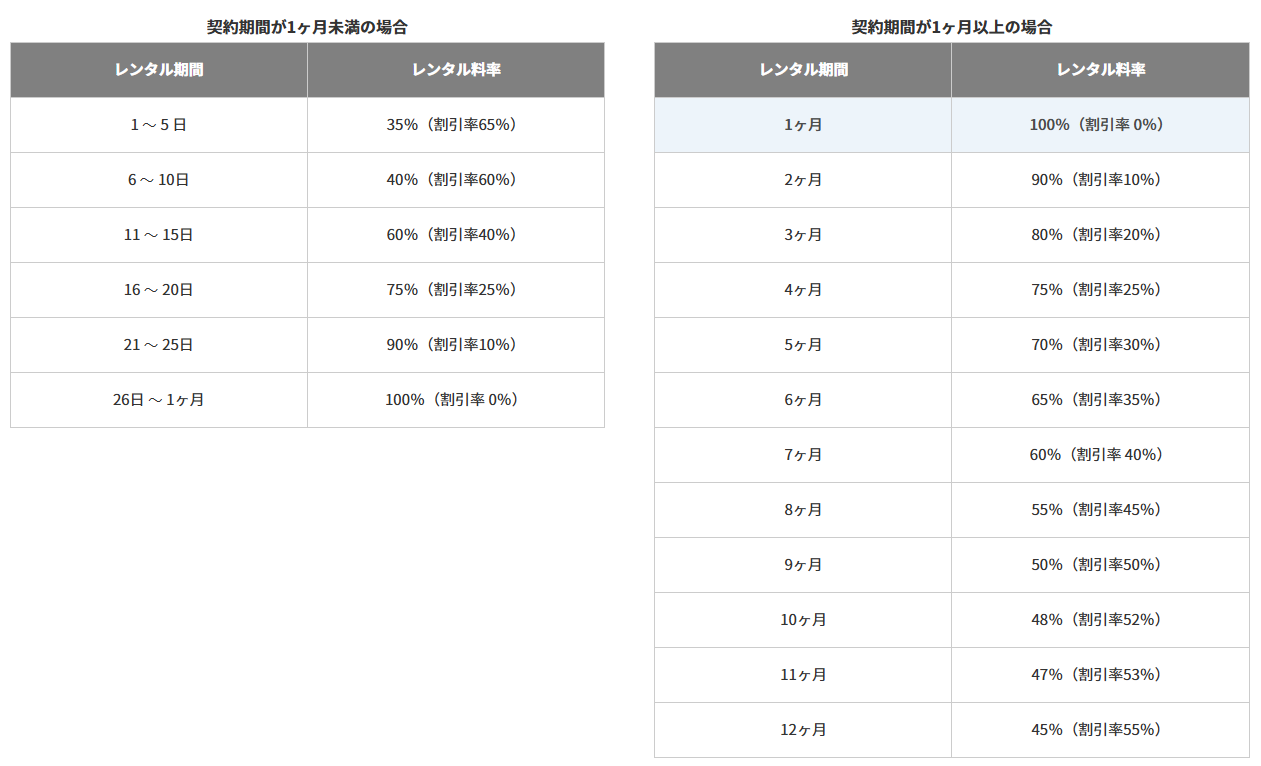 レンタル料金 = 基本料金 × レンタル期間に応じたレンタル料率